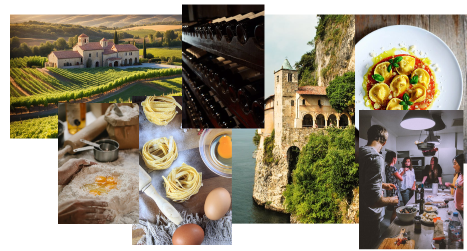 The circle as a central symbol: It represents the movement of rolling the pasta, its preparation, plating, and also symbolizes the gathering and unity of family.