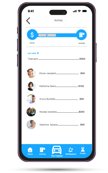 Easily switch between passengers and car owner profiles to streamline your navigation and optimize your carpooling experience.