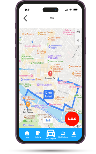 We have included an SOS button in your trip. If you feel in danger, pressing the button will alert your emergency contact or the police. Your safety is our top priority.